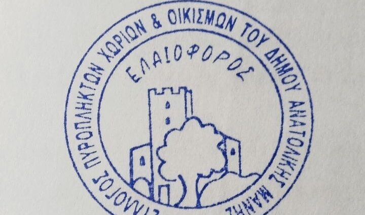 Με χαρά αγκαλιάζουμε τον νεοσύστατο σύλλογο ” Ελαιοφόρο” και τον φιλοξενούμε στην ιστοσελίδα μας! Θέλουμε να συμβάλουμε στην προσπάθεια των μελών του για παροχή βοήθειας σε πυρόπληκτα νοικοκυριά του Δήμου Ανατολικής Μάνης! ”Η ισχύς εν τη ενώσει” είναι ο τρόπος με τον οποίο κλείνουν γρήγορα αυτές οι πληγές και θα επανέλθει η ζωή των πυρόπληκτων συμπατριωτών μας πάλι σε κανονικούς ρυθμούς!