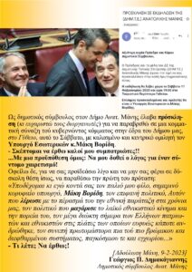 Μετά την καταστροφική πυρκαγιά του 2021, και ενώ υπάρχουν σύμβουλοι πυρόπληκτοι του συνδυασμού, δεν είδαμε να υπάρχει καμιά κίνηση εναντίον των υπευθύνων της πυρκαγιάς! Δεν είδαμε καμιά κίνηση ούτε όταν ο Δήμαρχος Πέτρος Ανδρεάκος κατηγορούσε τον Αξιωματικό της Πυροσβεστικής σχετικά με την εκκένωση στο Βαθύ, Μαυροβούνι και Γύθειο! Δεν είδαμε καμιά κίνηση εναντίον κανενός από όλους ανεξαιρέτως τους συμβούλους του συνδυασμού!