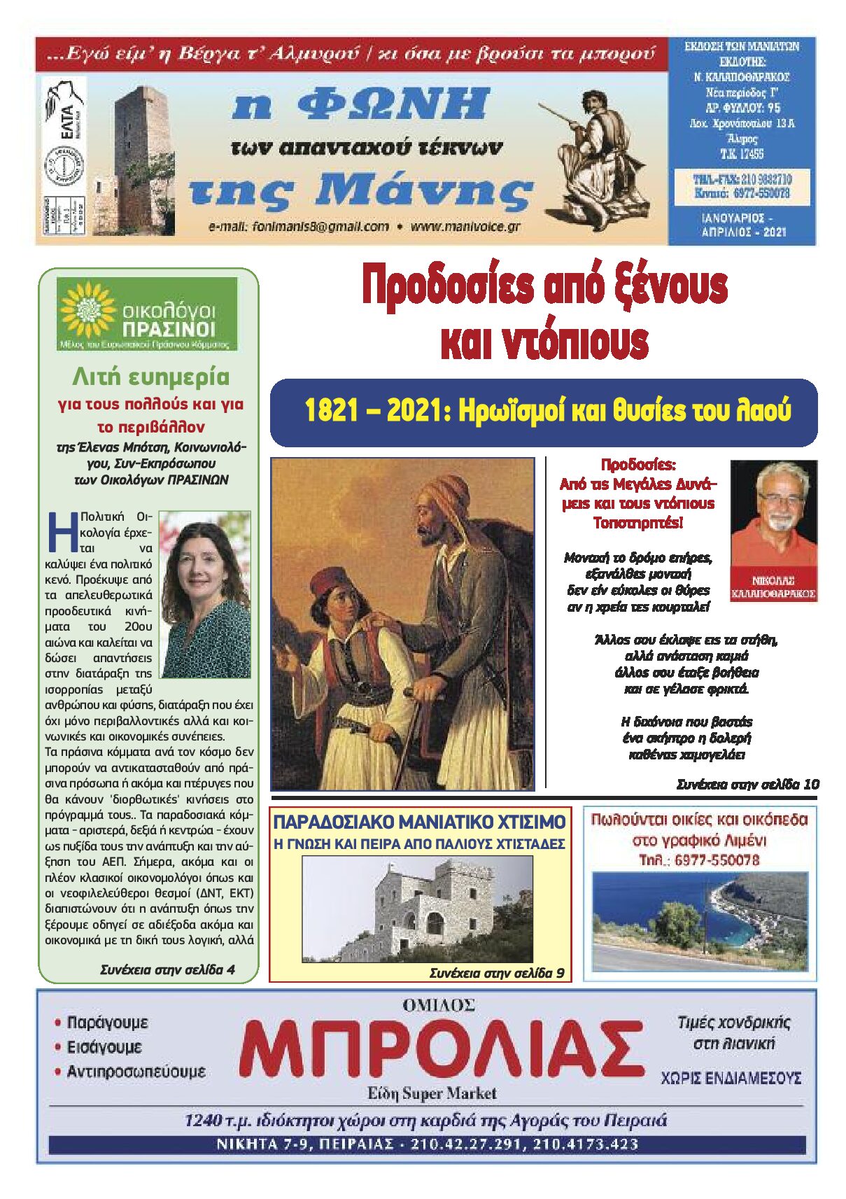 Η Φωνή της Μάνης σε έντυπη μορφή. ”Ιανουάριος – Απρίλιος 2021”. 2021-05-27 By: editor In: ΦΩΝΗ ΤΗΣ ΜΑΝΗΣ With: 0 Comments Read More →